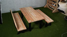 Deze tafel is beschikbaar in verschillende maten. De tafel is netjes afgewerkt en door de geschaafde balken van het blad en de afgeschuinde balkjes erg gebruiksvriendelijk.
