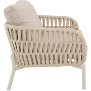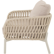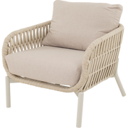 Het combinatievermogen van een robuust aluminium frame en een onderhoudsvriendelijk olefin kussen maakt Burgos geschikt voor regelmatig gebruik zonder gedoe. De olefin zitting staat bekend om kleurvastheid en snelle droogtijden, terwijl de beige flat rope detailing een eigentijds en tijdloos uiterlijk geeft. Met een draagvermogen van 140 kg biedt de stoel stabiliteit en comfort voor dagelijkse maaltijden of ontspannende momenten.
