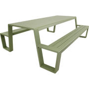220x183x74cm | Table 220x87x74cm | Bench 220x29x44cm | Aluminium matt soft green frame and table top