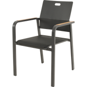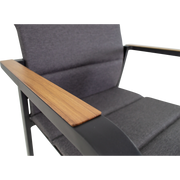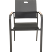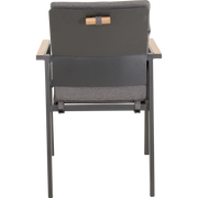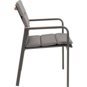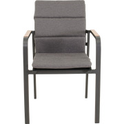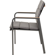 Het stevige aluminium frame maakt Sorapa geschikt voor buitengebruik en bestand tegen wisselende weersomstandigheden, terwijl de matte afwerking een eigentijdse uitstraling geeft die bij diverse tuin- en terrasinrichtingen past. De woodlook-armleuningen voegen een subtiele, elegante touch toe aan elke setting. Het 270 g/m² olefin-kussen biedt comfort zonder complex onderhoud; olefin is bekend om zijn weerstand tegen vlekken en UV-straling, waardoor kleur en frisheid langer behouden blijven. Dankzij het stapelbare ontwerp is opslag bij seizoenswisselingen een fluitje van een cent, wat het ideaal maakt voor terrassen, horeca-ruimtes en evenementen waar fortuinen aan ruimte cruciaal zijn. Het maximale draaggewicht van 120 kg biedt vertrouwen voor verschillende gebruikers, inclusief langere sessies buiten.