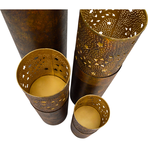 Lesli LivingS: Ø18x50cm | M: Ø22x70cm | L: Ø25x88cm | XL: Ø30x131cm | Steel | Rust antique finish, gold inside