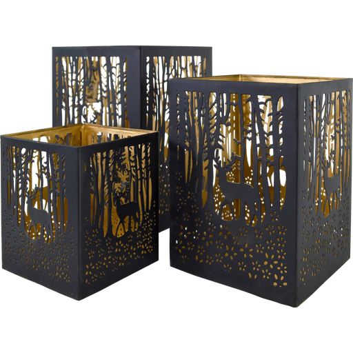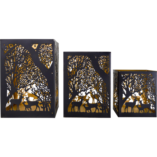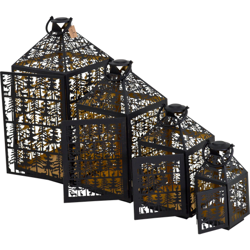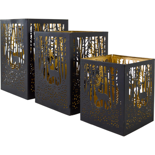 Windlicht Noël zwart/goud S/4