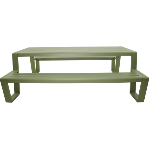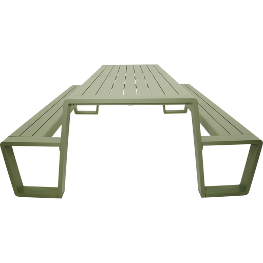 Lesli Living220x183x74cm | Table 220x87x74cm | Bench 220x29x44cm | Aluminium matt soft green frame and table top