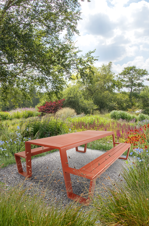 Lesli Living220x183x74cm | Table 220x87x74cm | Bench 220x29x44cm | Aluminium matt soft red frame and table top