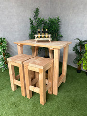 Suchen Sie einen robusten und stabilen Bartisch? Dann ist dieser außergewöhnliche Bartisch genau das Richtige für Sie. Er besteht aus 7 cm dicken Trägern und die Beine haben einen Querschnitt von 12 x 12 cm. Dadurch ist der Tisch langlebig und ideal für Gastronomie und Privatgebrauch.