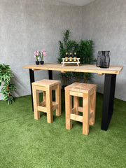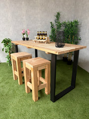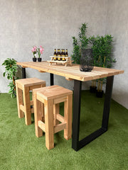 Suchen Sie einen robusten und stabilen Bartisch? Dann ist dieser außergewöhnliche Bartisch genau das Richtige für Sie. Er besteht aus 7 cm dicken Trägern und die Beine haben einen Querschnitt von 12 x 12 cm. Dadurch ist der Tisch langlebig und ideal für Gastronomie und Privatgebrauch.