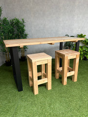 Dieser Tisch ist in verschiedenen Längen und Breiten erhältlich und 111 cm hoch. Er passt hervorragend zu unseren Douglas-Barhockern , wie auf den Fotos zu sehen!