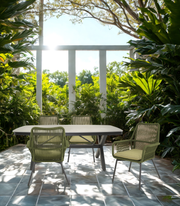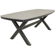 Met de Davos ovalen eetkamertafel haal je functionaliteit en stijl in huis. Het sintered stone blad biedt een stevige, onderhoudsvriendelijke basis die dagelijkse activiteit(en) zoals klussen, kinderfeestjes en wijnavonden probleemloos ondersteunt, terwijl de matte antraciet aluminium afwerking een eigentijdse uitstraling geeft die lang meegaat.