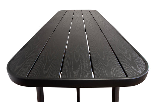 SenS-LineKomplett aus Aluminium gefertigt. Tischplatte in Holzoptik. Länge: 176 cm; Breite: 58,5 cm; Höhe: 110 cm