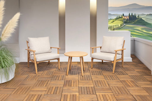 SenS-LineAluminium in Holzoptik. Kissen aus Polyestergewebe; Länge: Stuhl (2x): 72 Tisch: 58 cm; Breite: Stuhl (2x): 78 Tisch: 58 cm; Höhe: Stuhl (2x): 77...