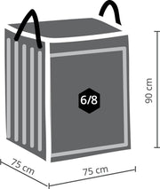 Praktische en handige lichtgewicht beschermhoes van polyesterweefsel (100% polyester) met een weerbestendige coating in lichtgrijs. Elke individuele beschermhoes bevat een opbergtas met draaggreep. Te gebruiken voor loungekussens. Afmetingen: 75 x 75 x 90 cm